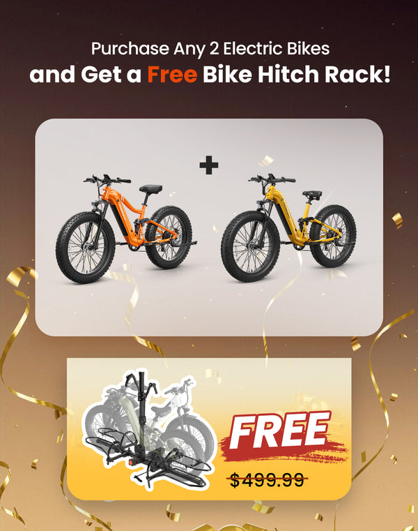Ride Together, Save Together! Purchase any two E-Bikes and get a Free Bike Hitch Rack. Experience double the thrill, double the freedom, and double the joy of riding!