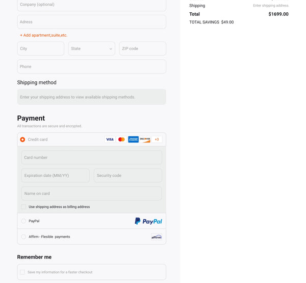 We support the following payment methods
