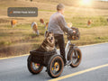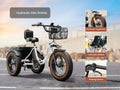 Equipped with triple 160mm hydraulic disc brakes, this trike delivers steady and responsive stopping power. Whether you're climbing a hill. navigating tight turns, or carrying a heavy load, a gentle pull on the brake lever ensures a smooth, balanced stop. lt's braking that feels intuitive and earns your trust with every squeeze.