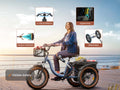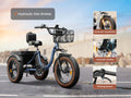 Equipped with triple 160mm hydraulic disc brakes, this trike delivers steady and responsive stopping power. Whether you're climbing a hill. navigating tight turns, or carrying a heavy load, a gentle pull on the brake lever ensures a smooth, balanced stop. lt's braking that feels intuitive and earns your trust with every squeeze.
