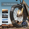 The 26'' * 4'' fat tires enhance stability, the shock absorption system absorbs impacts, and the high-power motor delivers strong power, allowing you to navigate various terrains with ease.