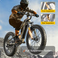 Paired with 26"x4" fat tires offering exceptional puncture resistance and durability, you’re equipped to tackle any terrain with confidence and ease.