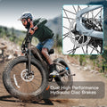 The powerful 26” * 4” fat tires offer exceptional traction, enabling you to enjoy an unparalleled riding experience on sand, rocks, and snow, pushing the boundaries of conventional riding.